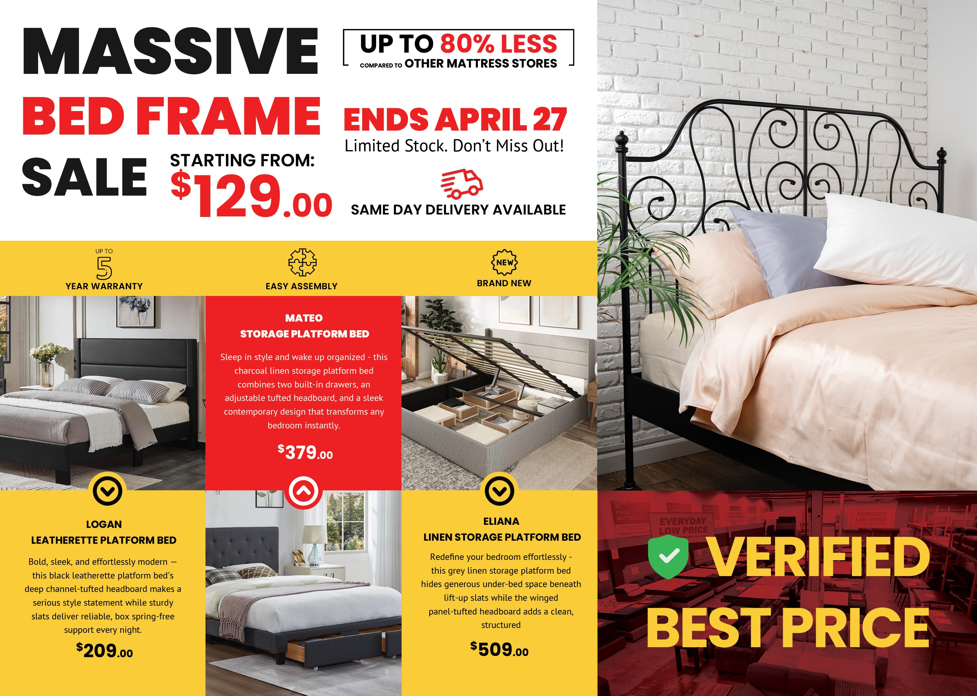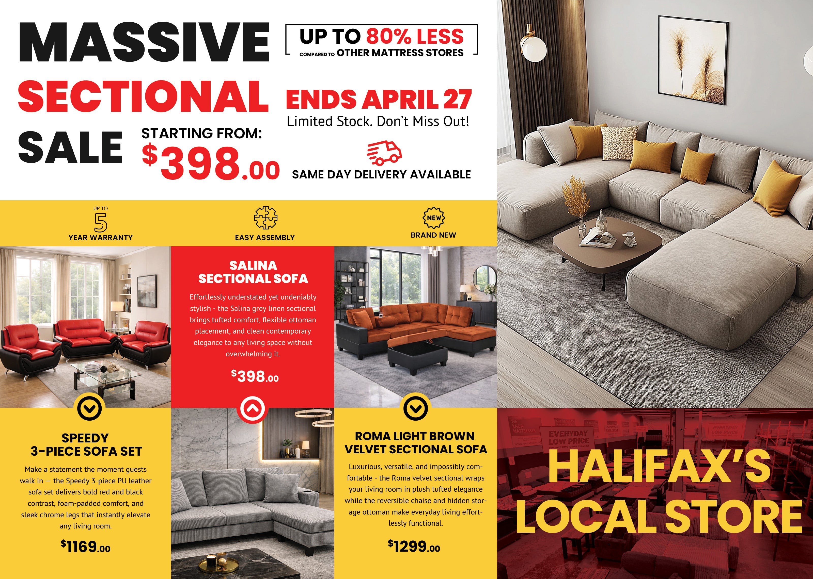 Same day local delivery banner for in-stock mattress and furniture items across Halifax